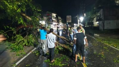Respon Cepat Personel Polsek Lhoknga Atasi Pohon Tumbang Dijalan Nasional Banda Aceh – Meulaboh
