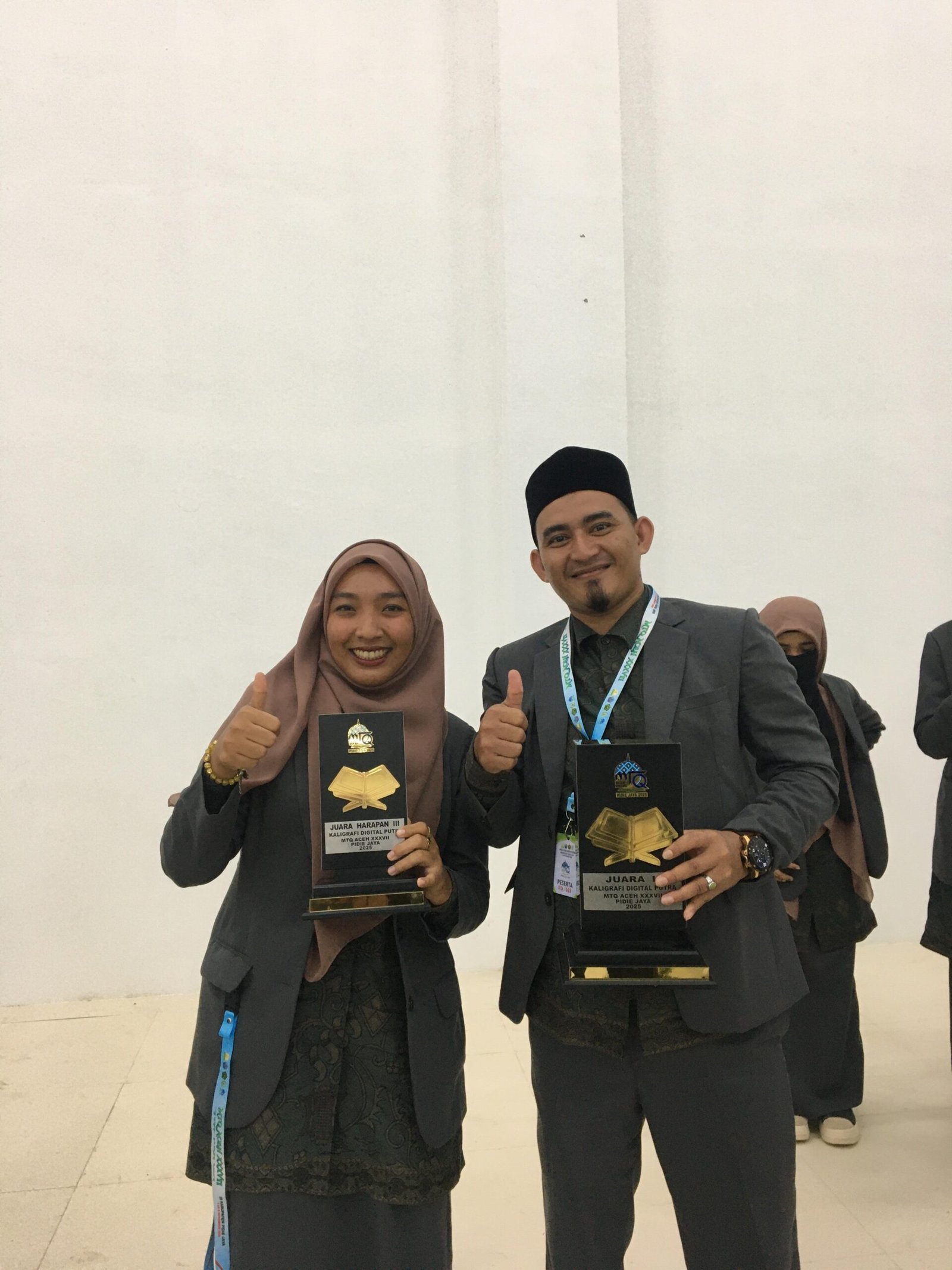 “Karya Cut Ulya Husna menunjukkan keseimbangan antara kaidah klasik dan inovasi digital. Ia mampu menampilkan keindahan khat dengan pemilihan warna yang lembut dan proporsional. Meskipun masih muda, potensinya sangat besar untuk berkembang hingga tingkat provinsi bahkan nasional,” ujar Drs. Fauzan saat ditemui usai pengumuman hasil lomba, Sabtu (8/11).