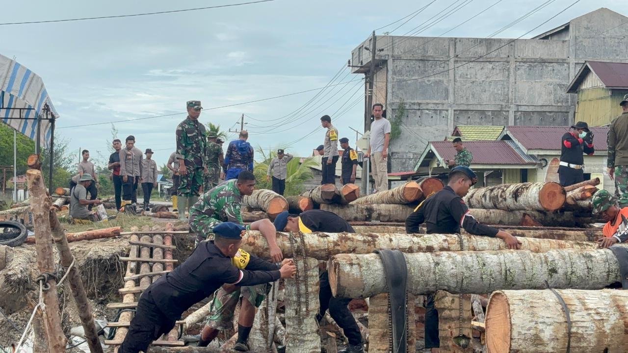 “Pembangunan jembatan darurat yang berada di Desa Gosong Telaga Barat, Kecamatan Singkil Utara, Kabupaten Aceh Singkil, masih berlangsung hingga hari ini. Brimob Polda Aceh bersama personel Kodim, Polres Aceh Singkil, serta masyarakat setempat terus berpacu untuk menyelesaikannya,” ujar Kabid Humas.