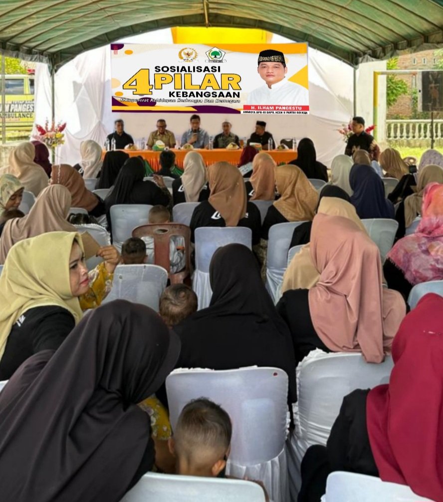 Acehreportase.id|Aceh temiang -Anggota DPR RI dari Partai Golkar, Ilham Pangestu dapil Aceh 2 mengatakan,“ Pancasila sebagai dasar negara dan ideologi nasional membawa konsekuensi logis bahwa nilai-nilai Pancasila dijadikan landasan pokok, landasan dasar bagi penyelenggaraan negara Indonesia.