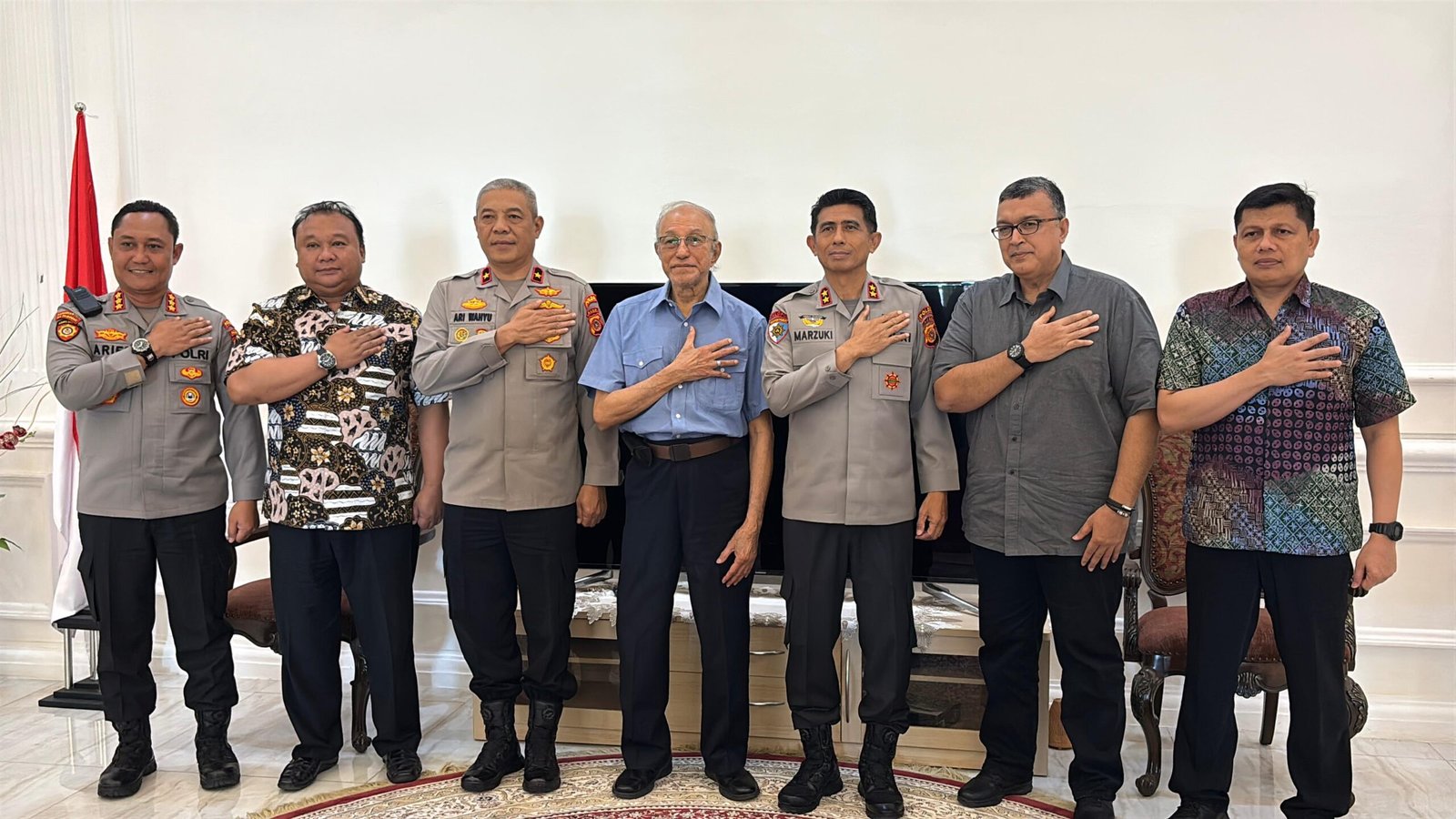 Acehreportase.id|Banda Aceh — Kapolda Aceh Irjen Marzuki Ali Basyah bersama Wakapolda Brigjen Ari Wahyu Widodo melaksanakan silaturahmi dengan Wali Nanggroe Aceh Paduka Yang Mulia Tgk. Malik Mahmud Al Haytar di kediamannya, Lampenerut, Kabupaten Aceh Besar, Jumat, 19 September 2025.