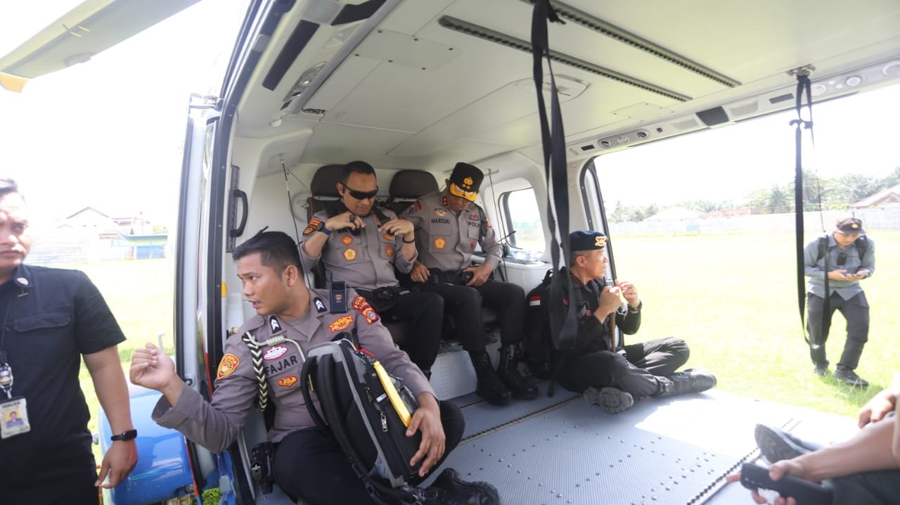 Acehreportase.id|Kualasimpang — Kapolda Aceh Irjen Pol. Marzuki Ali Basyah melakukan patroli udara menggunakan helikopter untuk memastikan kondisi jalur darat di perbatasan Aceh Tamiang—Langkat aman dan dapat dilalui untuk pendistribusian bantuan bagi korban bencana, Selasa, 2 Desember 2025.