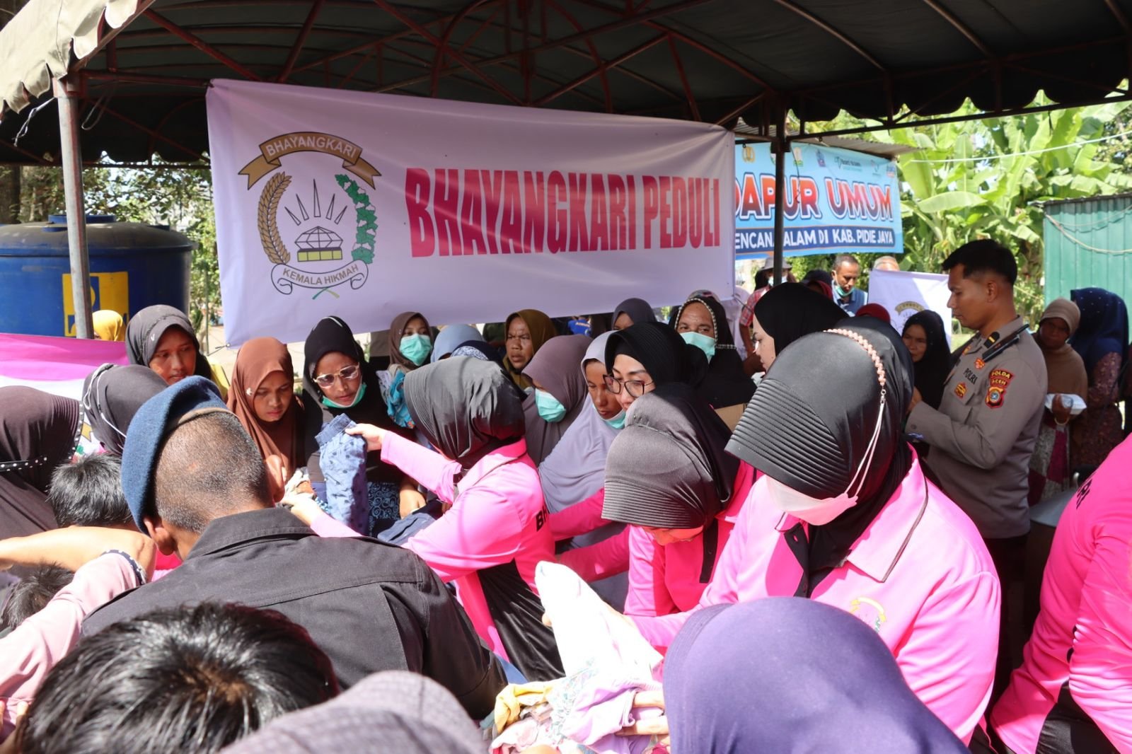 Kabid Humas Polda Aceh Kombes Pol. Joko Krisdiyanto menyampaikan, para Bhayangkari menyerahkan bantuan berupa nasi kotak dan pakaian, serta memantau langsung pelayanan kesehatan kepada para pengungsi di Posko Dapur Umum Polri. Selain itu, mereka juga menyalurkan paket sembako untuk mendukung operasional dapur umum Polri yang melayani warga terdampak banjir.