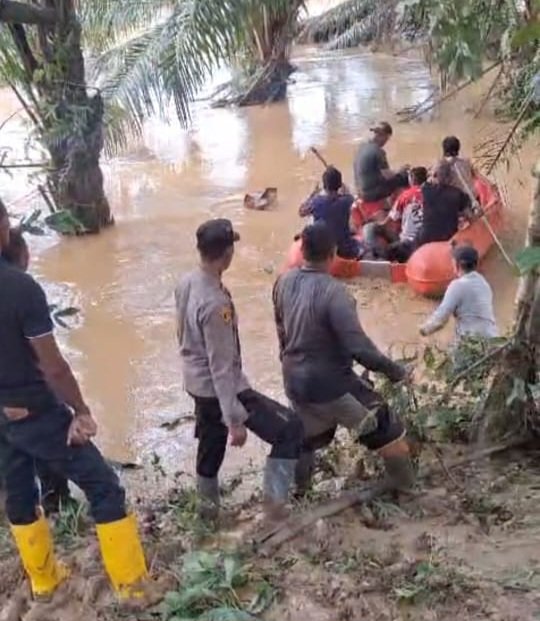 Kegiatan evakuasi Kapolsek Cot Girek terhadap anggota Polsek Langkahan Dan masyarakat yang terjebak banjir dilakukan pada Kamis, 27 November 2025 lalu.
