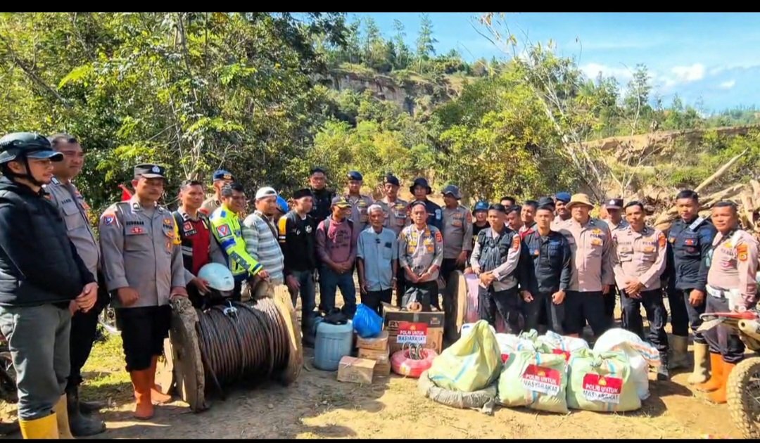 Selain bantuan sembako, Kapolres Aceh Tengah juga mengawal pendistribusian bantuan berupa sling kawat baja sepanjang 1.000 meter (dua gulung) dari BPBD Aceh Tengah.