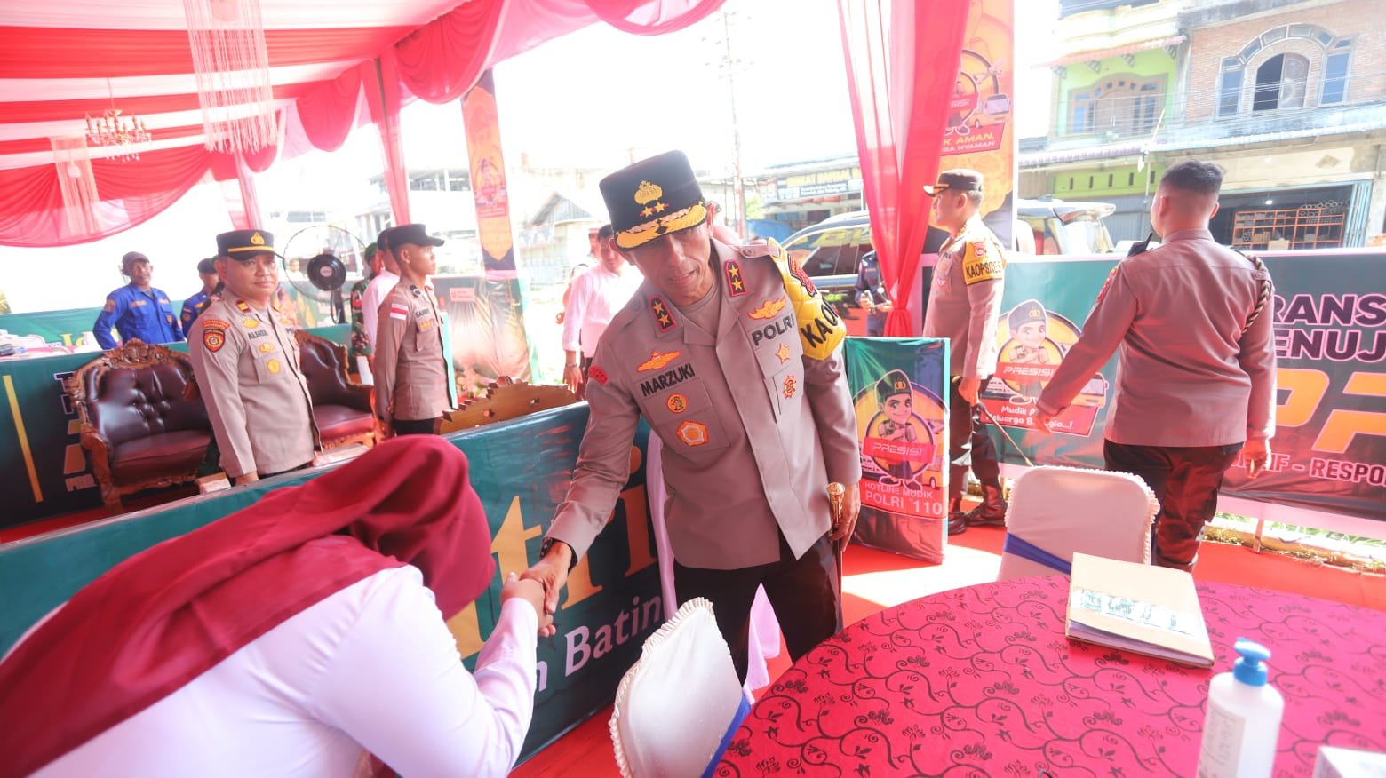 Kapolda Aceh yang didampingi Kapolres Aceh Timur AKBP Irwan Kurniadi, S.I.K., melakukan pengecekan langsung terhadap kesiapan Pos Pelayanan yang berada di depan Kantor Unit Laka Satlantas Polres Aceh Timur.